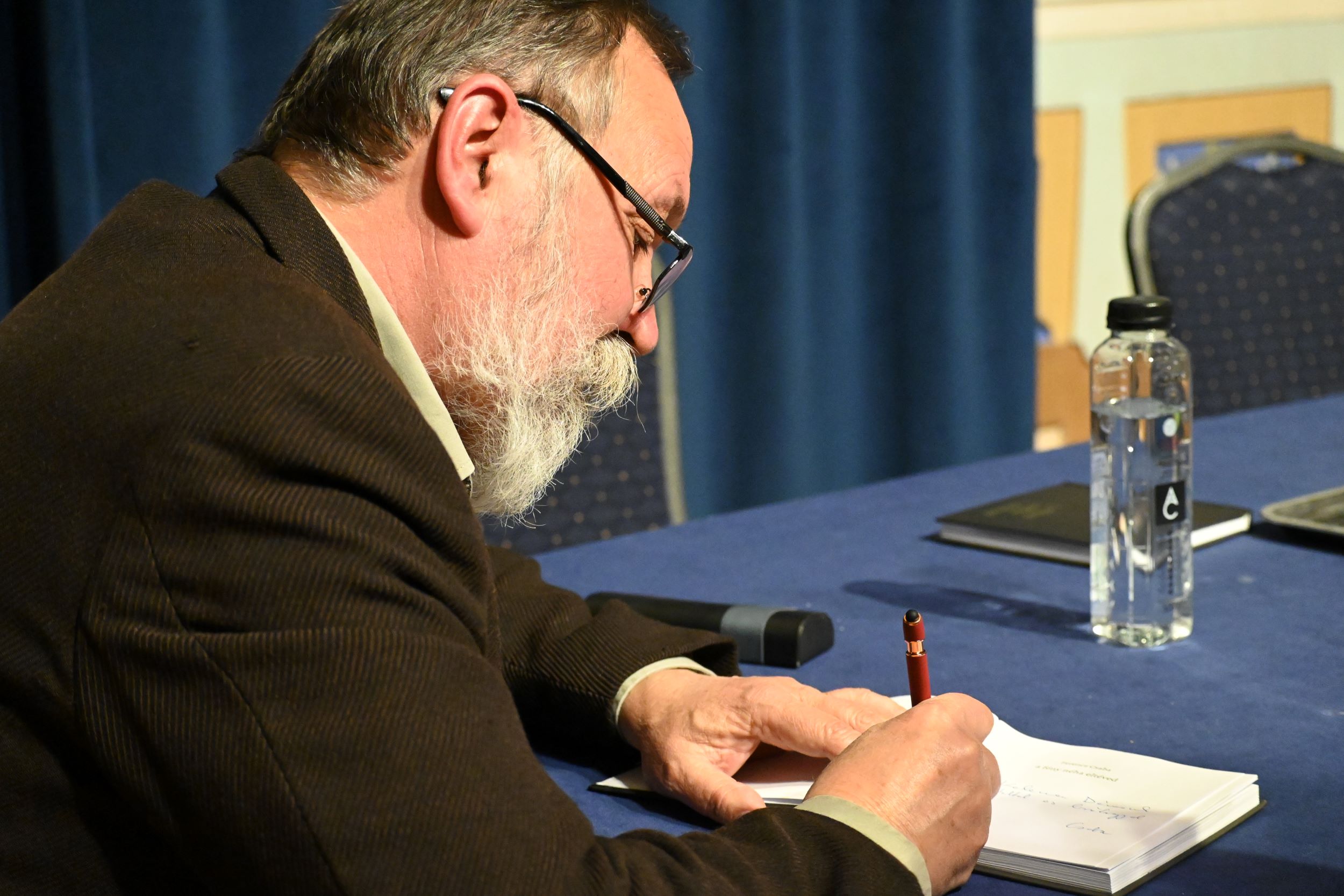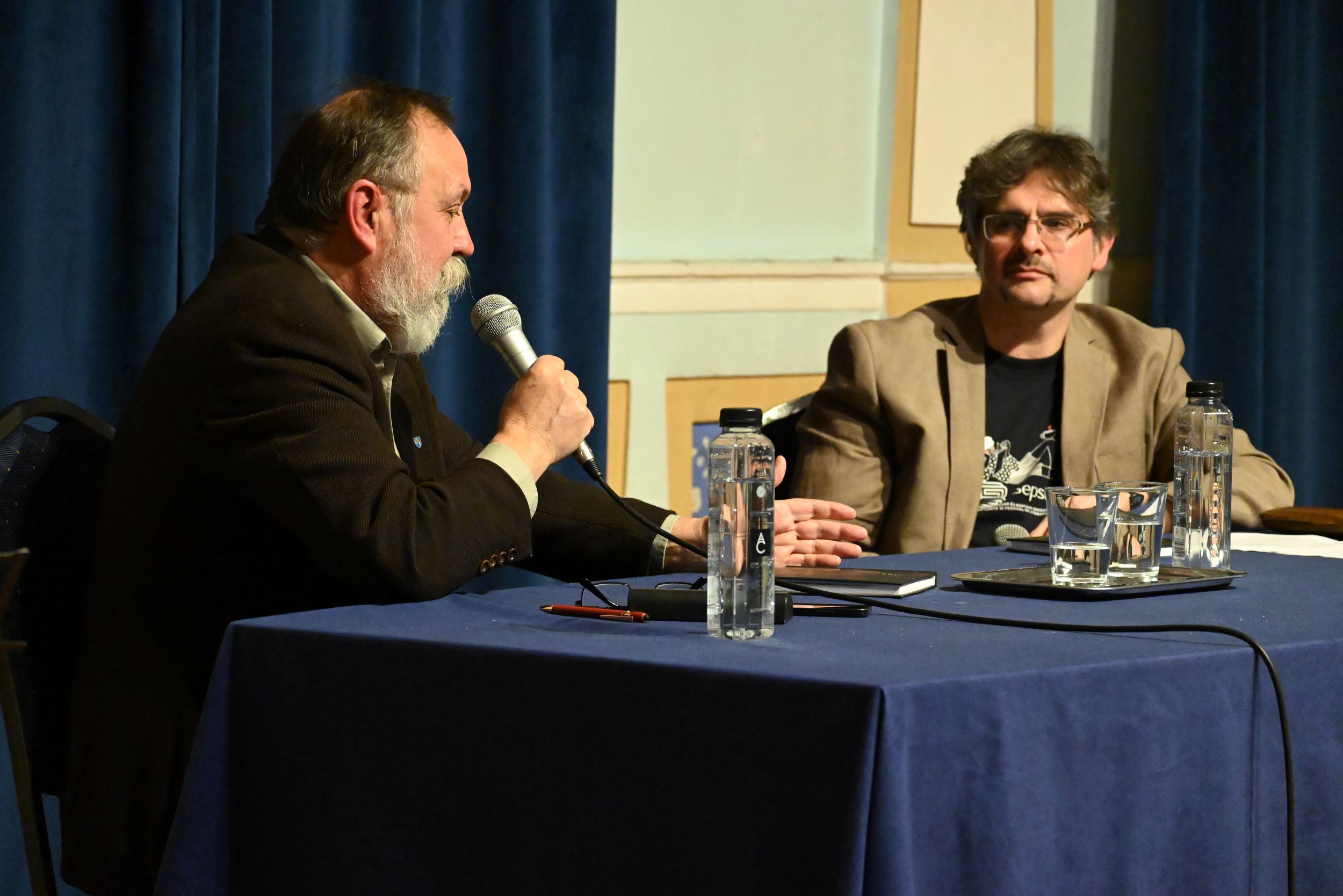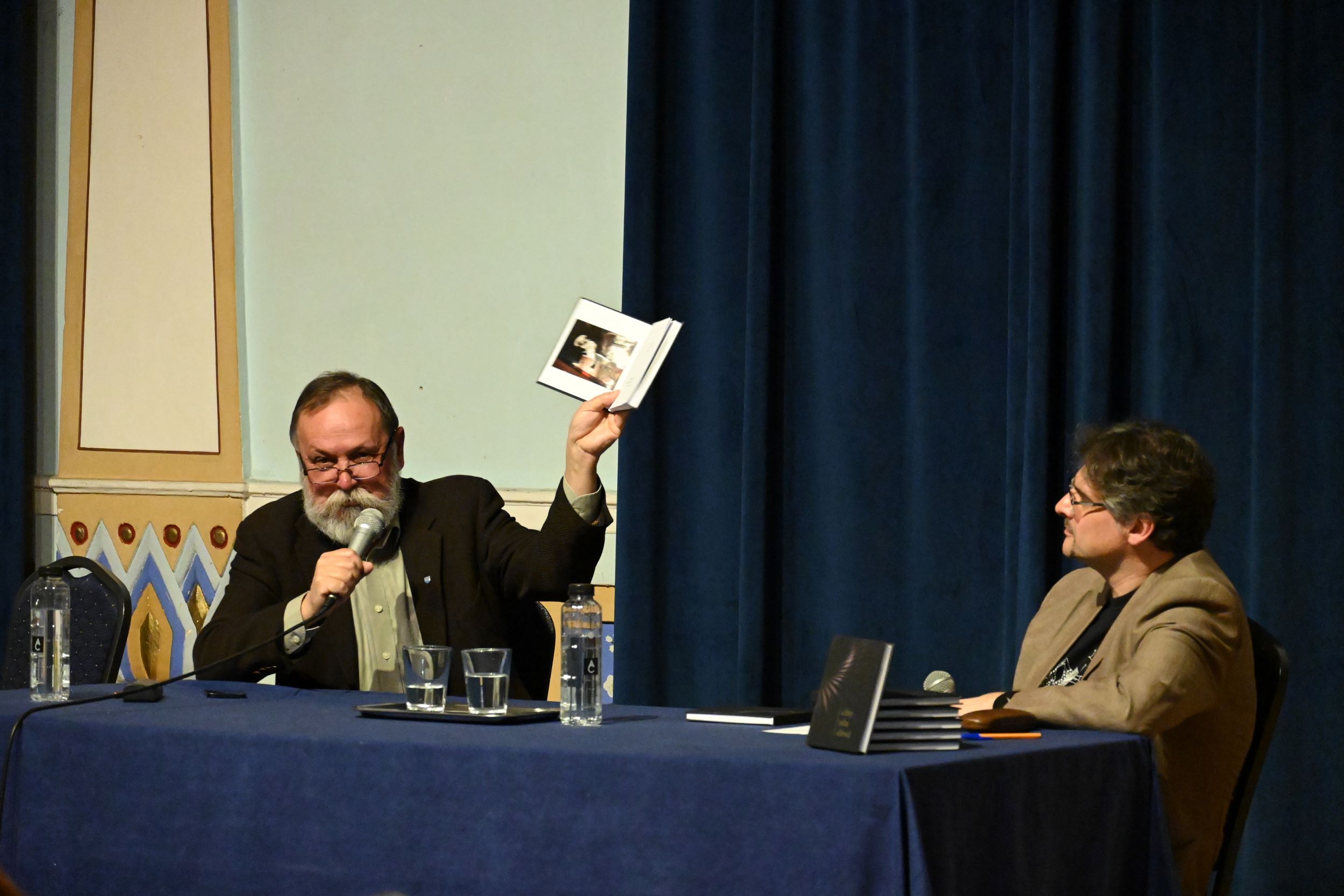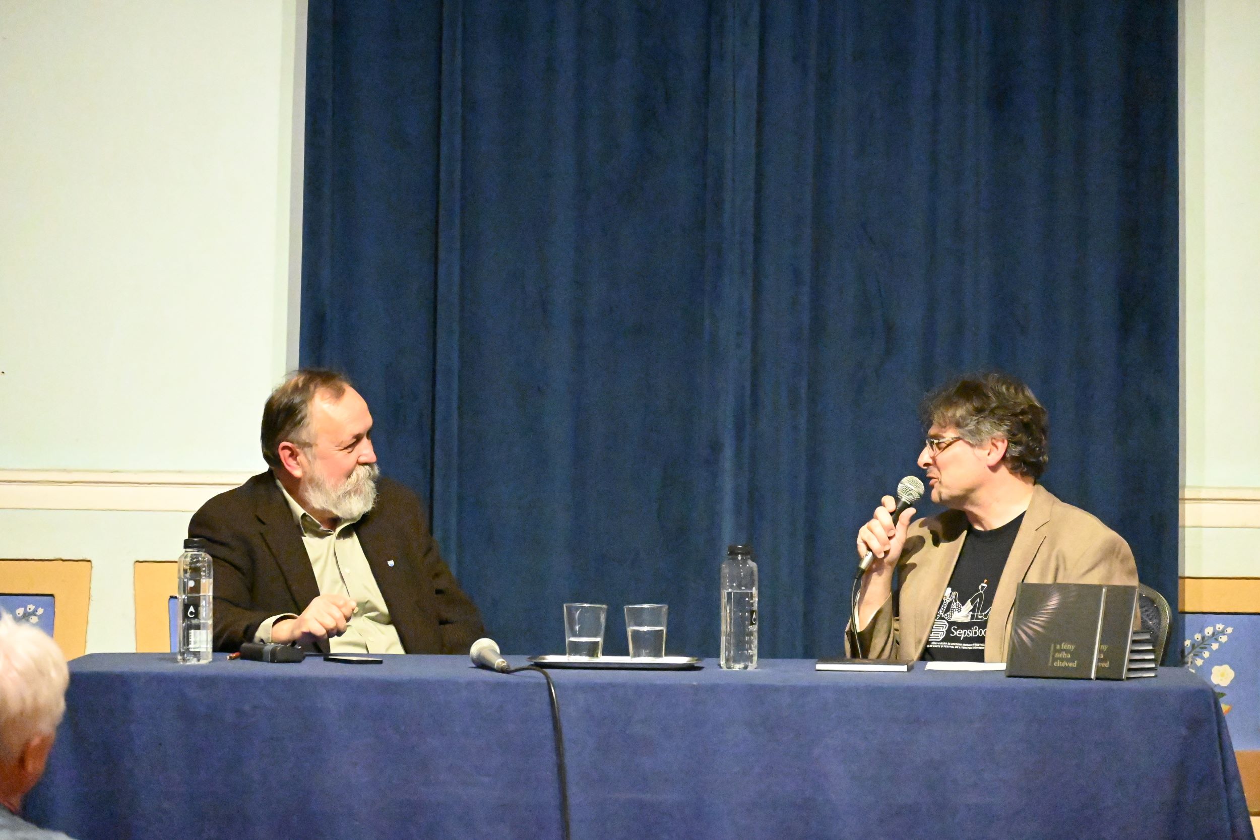 A szerző beszélgetőtársa Szonda Szabolcs könyvtárigazgató. Közreműködik a Mácsafej zenekar.
