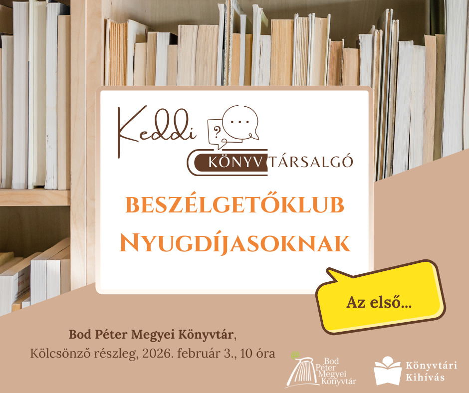 2026. január 30., péntekKönyvtárunk kötetlen beszélgetésre várja nyugdíjas olvasóit 2026. február 3-án , kedden 10 órától a Felnőtt kölcsönző részlegre.