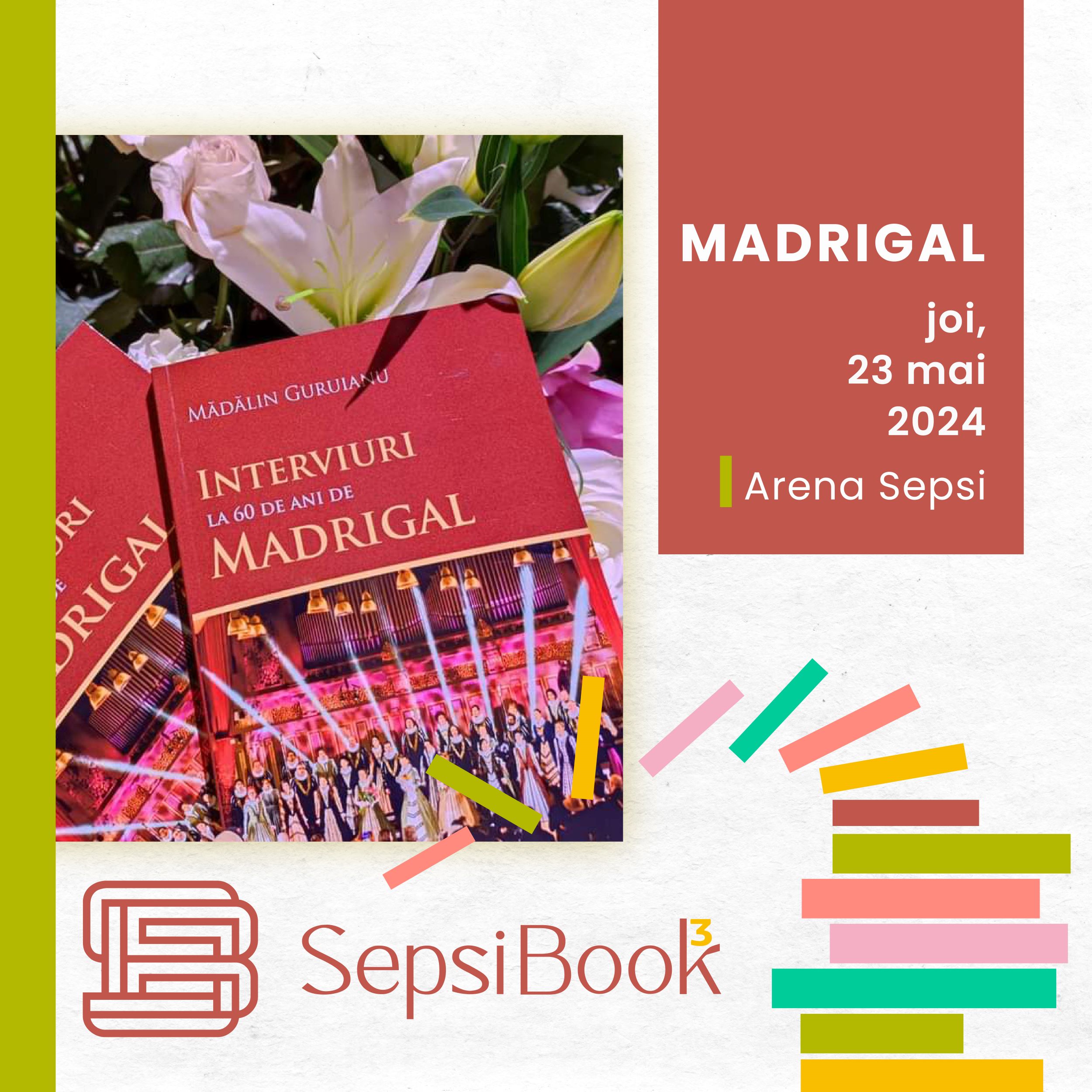 2024. május 23., csütörtök, 18:00 Az angyalok hangjai – kettős könyvbemutató. Meghívottak: Ungureanu Anna, a Madrigal kórus karmestere és a Marea carte a Madrigalului (A Madrigal nagy könyve) és az Interviuri la 60 de ani de Madrigal (Interjúk a Madrigal 60 évéről) című könyvek szerzője, Mădălin Guruianu // Konferenciaterem