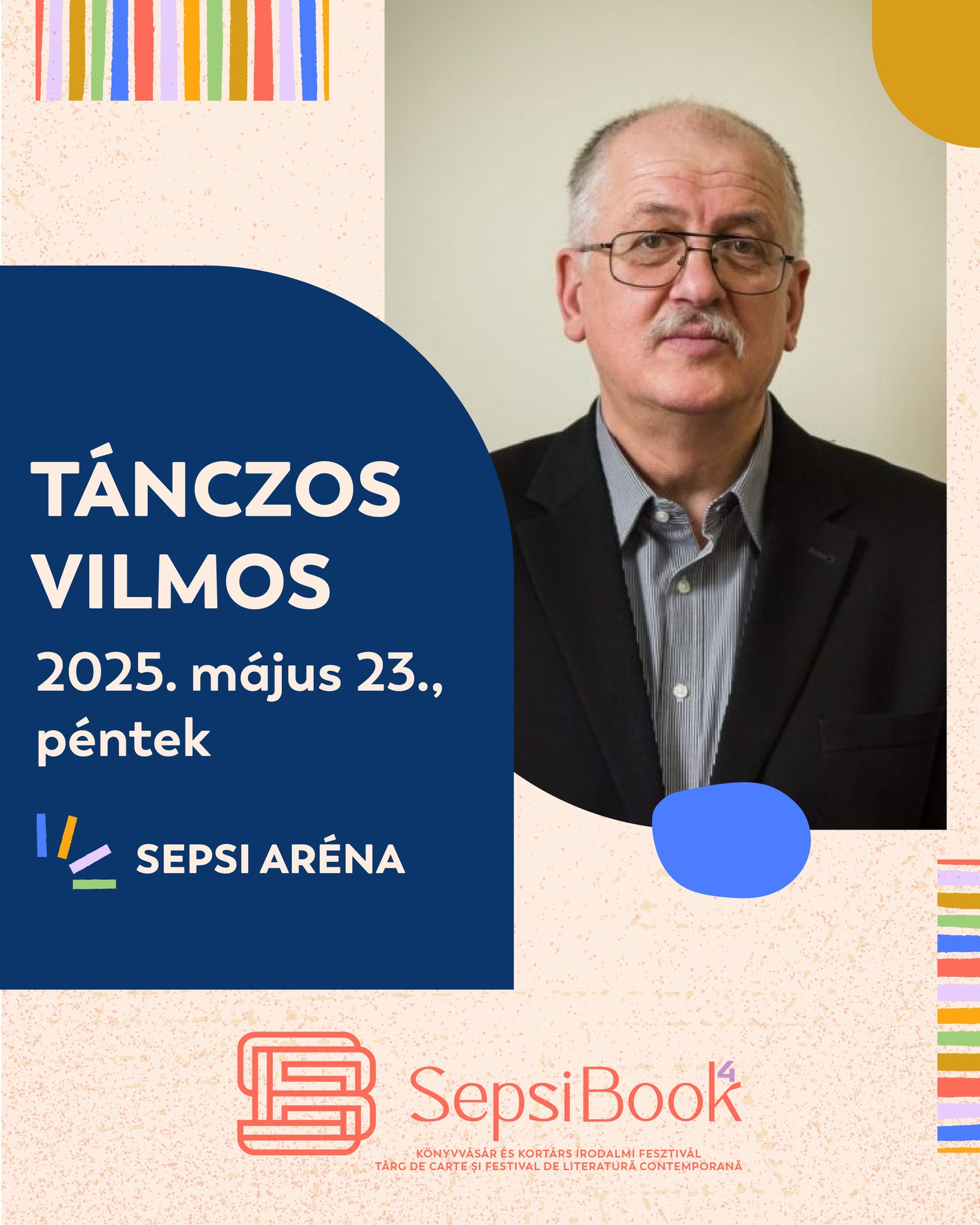 2025. május 23., péntek, 17:00 A történések színe és visszája – Tánczos Vilmos könyvbemutatója. A szerzővel Mirk Szidónia-Kata, a kötet szerkesztője beszélget; a Hargita Kiadó programja // Konferenciaterem