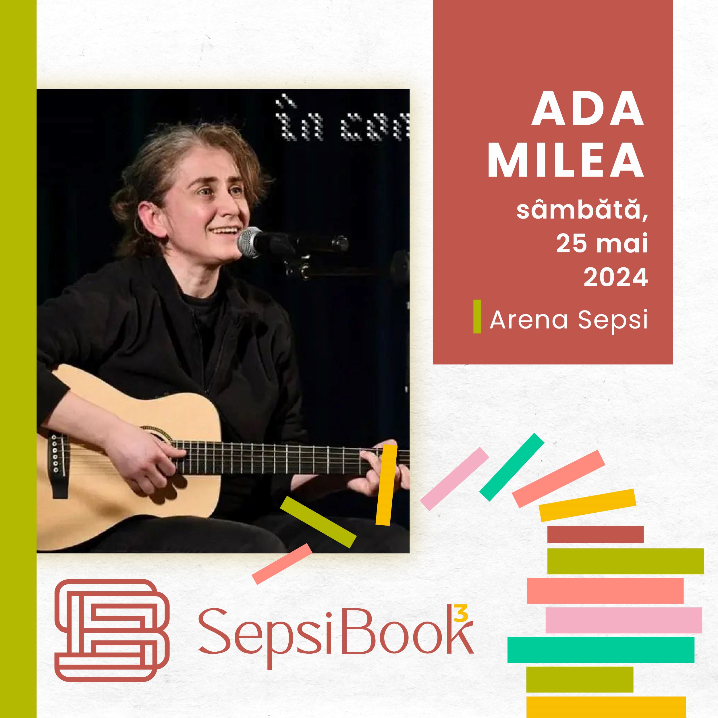 Ada Milea va încânta publicul cu două concerte la cea de-a treia ediție SepsiBook. În concertul pentru copii, „Apolodor”, artista va purta micii spectatori într-o călătorie muzicală, prezentând aventurile pinguinului din titlu, după volumul lui Gellu Naum „Cartea cu Apolodor”. La „Concert'n 3”, Ada, Alex Neagu și Bobo Burlăcianu vor interpreta melodii cu teme variate pentru publicul adult. Nu vor lipsi umorul, ironia, veselia și, pe ici, colo, chiar și câte un nod în gât.